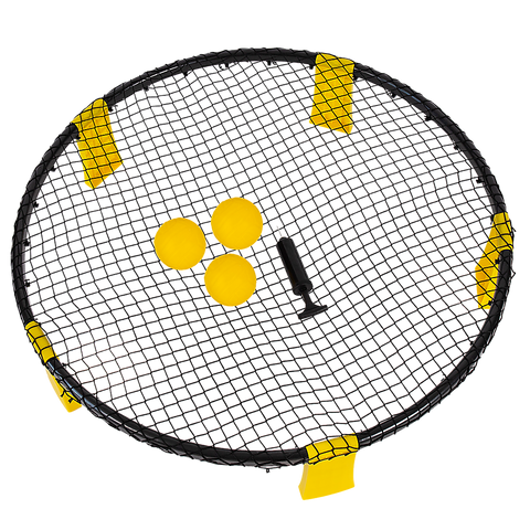 It's a four-player game with each player trying to bounce off the ball through the net. It's another version of volleyball - that you don't need a designated court for.