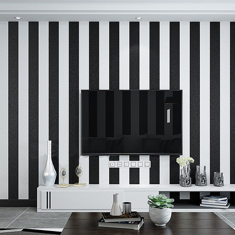 Modern Fashion Black & White Stripes Wallpaper Wall Mural