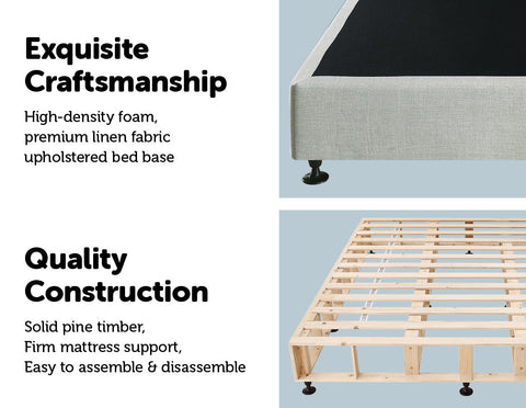 - Materials: Solid pine timber, high-density foam, and premium linen fabric upholstered bed base