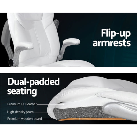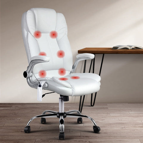 Artiss Massage Office Chair PU Leather 8 Point - White