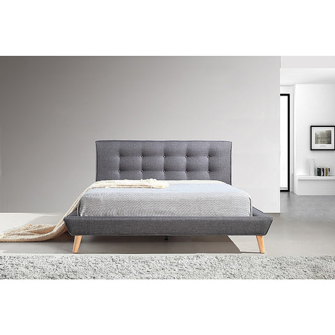Queen Linen Fabric Deluxe Bed Frame Grey