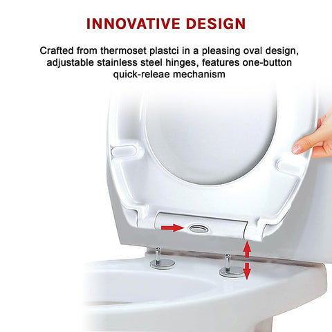 That’s not all this fine toilet seat can do. With its one-button easy release mechanism, you can remove the seat easily to clean all around it—even those places you find hard to reach with normal toilet seats. Its universal sizing fits almost any standard toilet, while its adjustable stainless steel hinges are built to last.