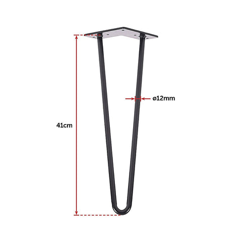 Set of 4 Industrial Retro Hairpin Table Legs 12mm Steel Bench Desk - 41cm Black