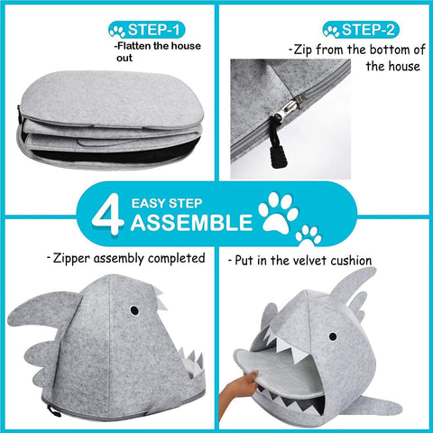 Shark Shape Pet Cave Bed for Cats andSmall Dogs 45 x 45 x 38 cm (Light Grey)