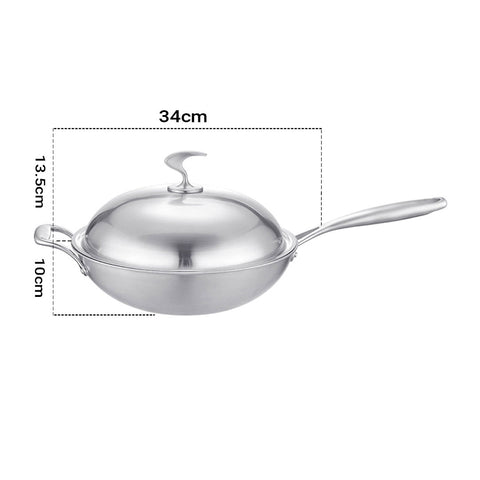 18/10 Stainless Steel 34cm Frying Pan Skillet with Helper Handle and Lid