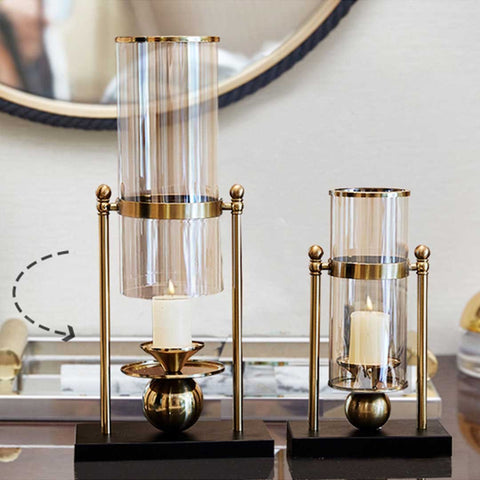 42cm 32cm Transparent Glass Vase with Yellow Flower and Candle Set
