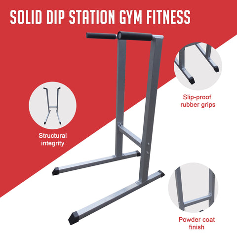 The Randy & Travis Solid Dip Station will give you the upper body workout that delivers - it builds your shoulder strength, thickens your deltoids and develops your triceps. This sturdy device gets its balance from the wide, extended base that ensures stability. The 2" x 3" heavy-gauge steel uprights are suitable for users of all size. Your safety and comfort is ensured by the oversize 1" bars that feature extra-thick, slip-proof rubber grips in any position required by your exercises. This amazing piece of equipment can be used at the home or at the gym.
