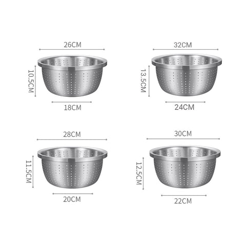 - 1 X SOGA 4-Pieces Stainless Steel Colander Bowls Set (26cm, 28cm, 30cm and 32cm)