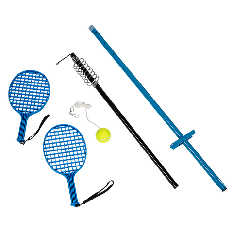 This game comes with everything you need to set it up and get playing as soon as you take it out of the box. Just tap the ground spike into the ground, get the pole and spiral rotor up, grab the racquets, and start playing. This set isn't like some of the cheap plastic sets you see on the market. This set features a tough and durable metal pole that can take all the wear and tear your active family can give it. Get your kids outside when spring comes our way. Order your swingball set today!