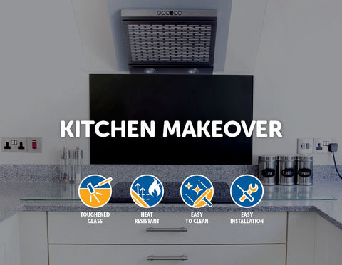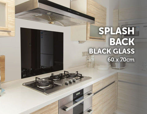 Toughened 60cm x 70cm Black Glass Kitchen Splashback