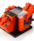 The sharpening modules are conveniently slotted on and off the operation end of the unit when needed, with holster slots situated on the sides of the unit for each module that is not in use. The MFS-3 features a 10mm diamond coated sharpening wheel for professional, precision sharpening. This compact unit can be transported with you in your toolbag to take on the move, or permanently mounted to your workbench.