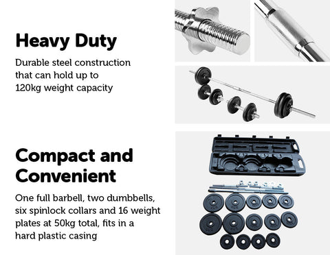 Weight Set Barbell Dumbell Dumb Bell Gym 50kg Plate
