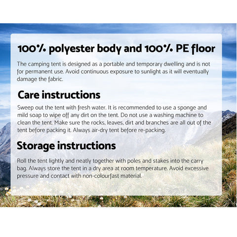 Now you can spend less time setting up the tent and more time relaxing or exploring the outdoors when you go camping with our Weisshorn 4-person Dome Tent. The hard work is already done for you as the tent is pre-attached to the frame, so it only takes two minutes to pitch the tent. The tent is large and accommodates up to 4 people, meaning you can take your whole extended family camping. Large zipper doors and windows provide excellent ventilation and the windows have mesh screens to prevent mosquito and insect from getting in and biting you. TThe tent is suitable for use all year round, with the PU water-resistant coating protecting you from the rain and the thick water-resistant base keeping moisture from seeping up from the ground. And seeing as how simple it is to pitch our tent and transport it around in the included handy heavy-duty carry bag, you will want to go camping all year round.