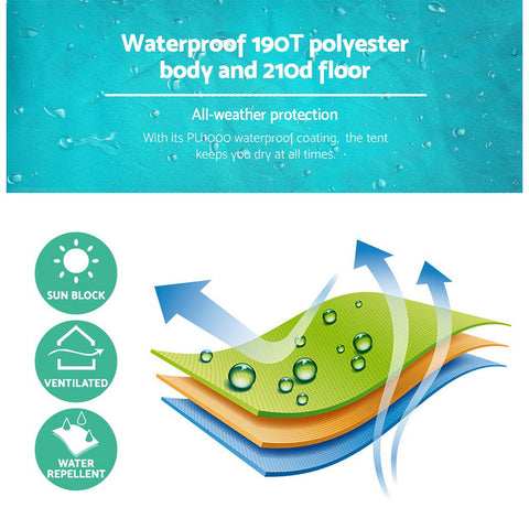 Weisshorn Pop Up Beach Tent Camping Hiking 3 Person Sun Shade Fishing Shelter