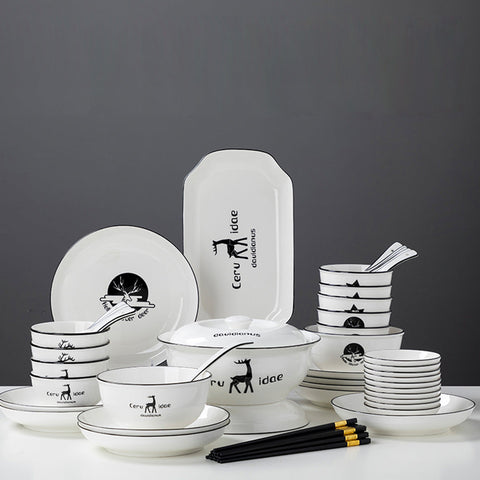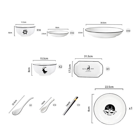 - 1X SOGA 34 pcs White Antler Ceramic Dinnerware Set (10 Bowls, 10 Plates, 10 Spoons, 10 Pairs of Chopsticks, 2 Noodle Bowls, 1 Large Plate, 1 Fish Plate, 1 Big Soup Spoon,10 Side Plates)