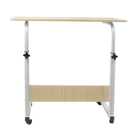Its compact size makes it easy to store in a closet when you need more space. With a sleek wooden top and pull board, its natural design will look great with any décor. An adjustable desktop allows people of varying heights to use this computer desk, while a wide work surface provides room for a laptop, a mobile device, and extra materials.