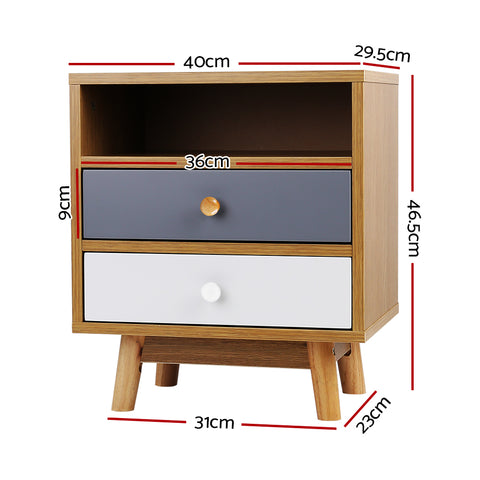Made from a combination of particle and MDF board with solid rubber wood legs, the tri-tone Bertha Bedside Drawers is the perfect choice to grace any bedroom, study or any other space in a discerning home or establishment. The splayed legs add a unique stand to this very able Bedside Drawers that also comes with round handles and smooth anti-rust drawer sliders for hassle-free use. Not least, ample storage space is found with one open shelf and two drawers for all your bedside or personal essentials.