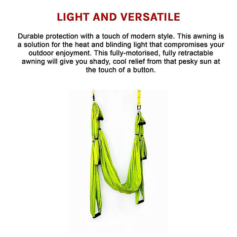 The swing, with over-all measurement of 250 x 150cm, will allow you to perform a wide variety of yoga exercises while minimizing the effects of gravity on your body.